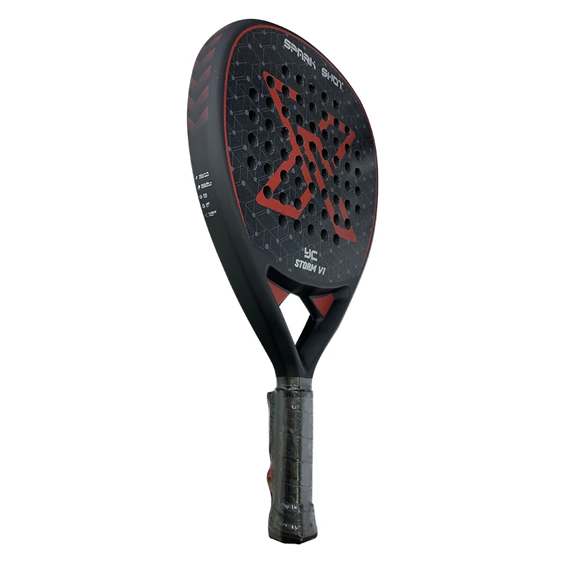 สตอร์ม V1มอบการผสมผสานที่ลงตัวระหว่างพลังและการควบคุมสำหรับผู้เล่นขั้นสูงที่ต้องการเร่งความเร็วเกม หน้าไม้ตีผสมผสานประสิทธิภาพที่ดีที่สุดของคาร์บอนไฟเบอร์และไฟเบอร์กลาส หน้าไม้มี Grit Spin ที่หยาบ ซึ่งช่วยเพิ่มการสร้างสปินในทุกช็อต นอกจากนี้ยังมี Ungrade Butt Cap และสายรัด Neoprene ทำให้ปลอดภัยยิ่งขึ้นและปรับแต่งได้อย่างเต็มที่